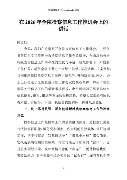 / 【七哥公文】2026年:在2026年全院检察信息工作推进会上的讲话+更多免费公文+VX:QiGeGongWen2024