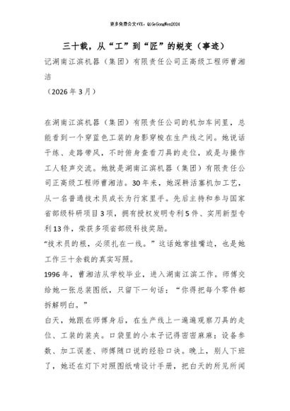 / 【七哥公文】2026年:三十载,从“工”到“匠”的蜕变(事迹)_副本+更多免费公文+VX:QiGeGongWen2024