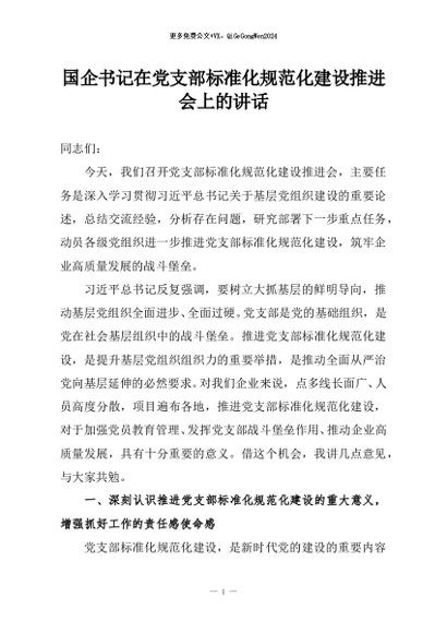 / 【七哥公文】2026年:国企书记在党支部标准化规范化建设推进会上的讲话+更多免费公文+VX:QiGeGongWen2024