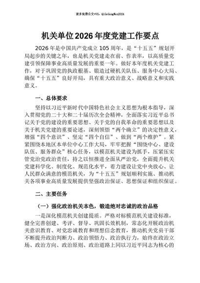 / 【七哥公文】2026年:机关单位2026年度党建工作要点+更多免费公文+VX:QiGeGongWen2024