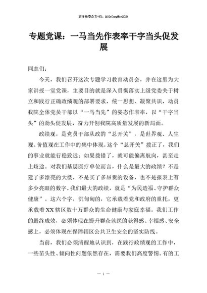 / 【七哥公文】2026年:专题党课:一马当先作表率干字当头促发展+更多免费公文+VX:QiGeGongWen2024
