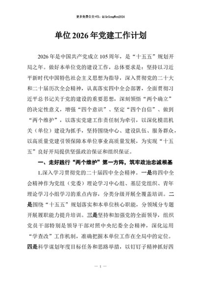 / 【七哥公文】2026年:单位2026年党建工作计划+更多免费公文+VX:QiGeGongWen2024