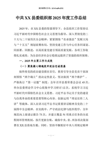/ 【七哥公文】2026年:中共XX县委组织部2025年度工作总结+更多免费公文+VX:QiGeGongWen2024