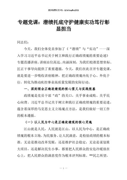 / 【七哥公文】2026年:专题党课:潜绩托底守护健康实功笃行彰显担当+更多免费公文+VX:QiGeGongWen2024