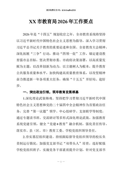 / 【七哥公文】2026年:XX市教育局2026年工作要点+更多免费公文+VX:QiGeGongWen2024