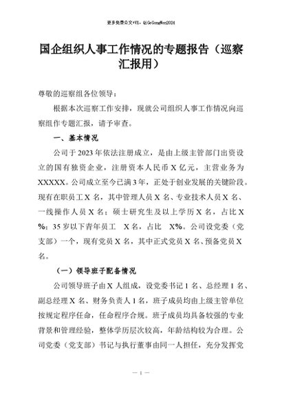 / 【七哥公文】2026年:国企组织人事工作情况的专题报告(巡察汇报用)+更多免费公文+VX:QiGeGongWen2024