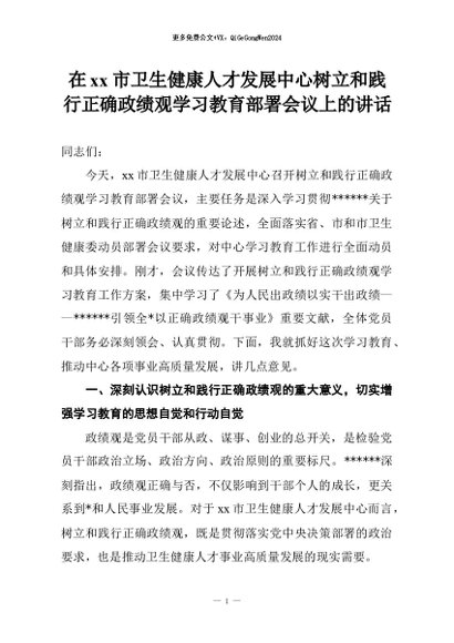 【七哥公文】2026年:在市卫生健康人才发展中心树立和践行正确政绩观学习教育部署会议上的讲话+更多免费公文+VX:QiGeGongWen2024
