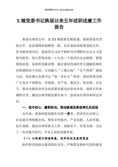 / 【七哥公文】2026年:镇党委书记换届以来五年述职述廉工作报告 (2)+更多免费公文+VX:QiGeGongWen2024