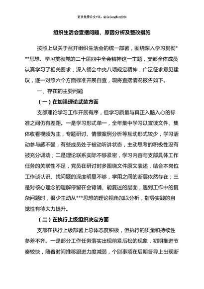 【七哥公文】2026年:组织生活会查摆问题、原因分析及整改措施+更多免费公文+VX:QiGeGongWen2024
