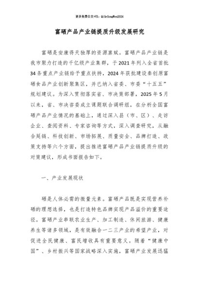 【七哥公文】2026年:富硒产品产业链提质升级发展研究_副本+更多免费公文+VX:QiGeGongWen2024