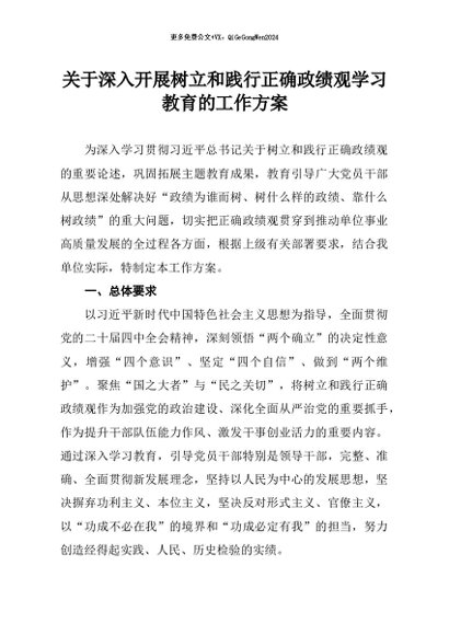 / 【七哥公文】2026年:深入开展树立和践行正确政绩观学习教育的工作方案+更多免费公文+VX:QiGeGongWen2024