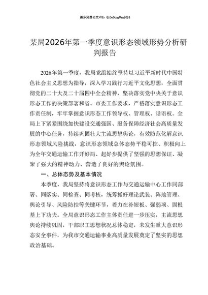 【七哥公文】2026年:局2026年第一季度意识形态领域形势分析研判报告+更多免费公文+VX:QiGeGongWen2024