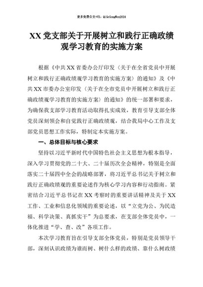 【七哥公文】2026年:党支部开展树立和践行正确政绩观学习教育的实施方案+更多免费公文+VX:QiGeGongWen2024