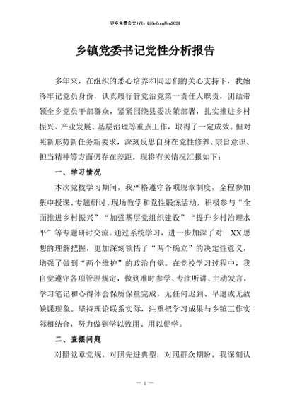 / 【七哥公文】2026年:乡镇党委书记党性分析报告+更多免费公文+VX:QiGeGongWen2024