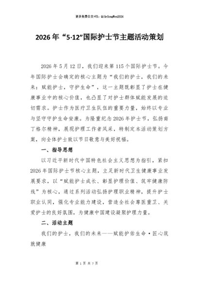 / 【七哥公文】2026年:2026年“5·12”国际护士节主题活动策划+更多免费公文+VX:QiGeGongWen2024