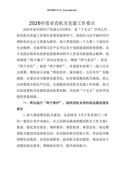 【七哥公文】2026年:2026年度省直机关党建工作要点(含重点任务清单。党建计划)+更多免费公文+VX:QiGeGongWen2024
