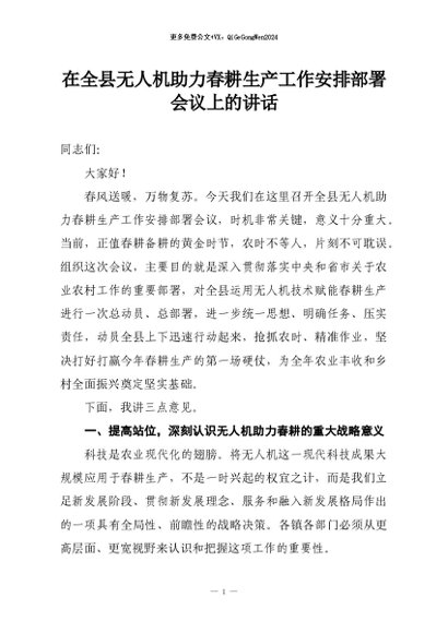 【七哥公文】2026年:在全县无人机助力春耕生产工作安排部署会议上的讲话+更多免费公文+VX:QiGeGongWen2024
