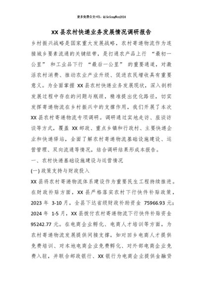 / 【七哥公文】2026年:XX 县农村快递业务发展情况调研报告_副本+更多免费公文+VX:QiGeGongWen2024