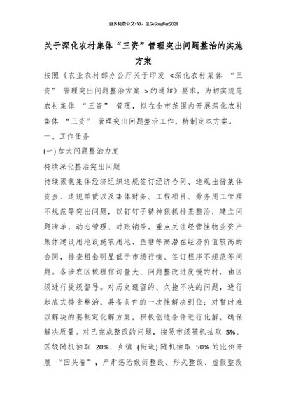 【七哥公文】2026年:关于深化农村集体 “三资” 管理突出问题整治的实施方案_副本+更多免费公文+VX:QiGeGongWen2024