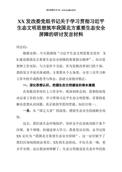 【七哥公文】2026年:发改委党组书记学习贯彻习近平生态文明思想筑牢我国北方重要生态安全屏障的研讨发言材料+更多免费公文+VX:QiGeGongWen2024