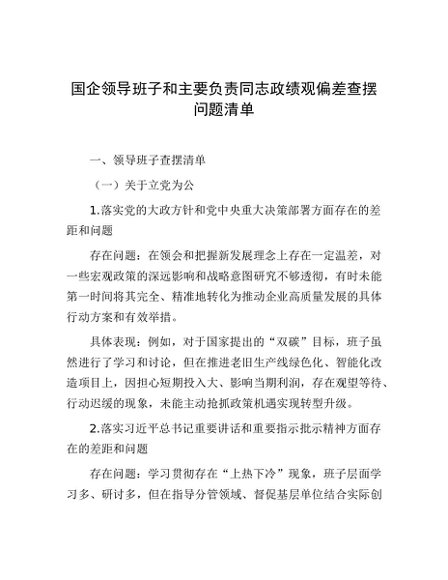 【七哥公文】2026年:国企公司班子和主要负责同志政绩观问题清单各4方面16个问题+更多免费公文+VX:QiGeGongWen2024