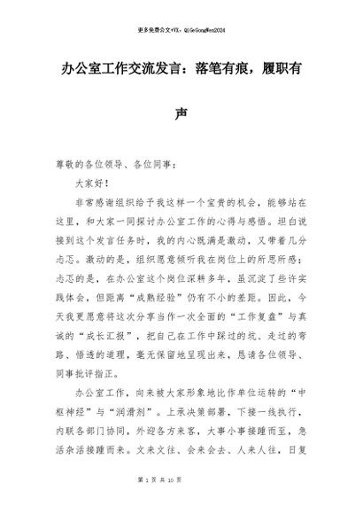/ 【七哥公文】2026年:办公室工作交流发言:落笔有痕,履职有声+更多免费公文+VX:QiGeGongWen2024