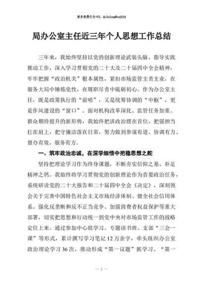 / 【七哥公文】2026年:局办公室主任近三年个人思想工作总结+更多免费公文+VX:QiGeGongWen2024