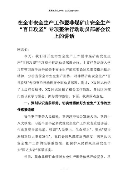 【七哥公文】2026年:在全市安全生产工作暨非煤矿山安全生产“百日攻坚”专项整治行动动员部署会议上的讲话+更多免费公文+VX:QiGeGongWen2024