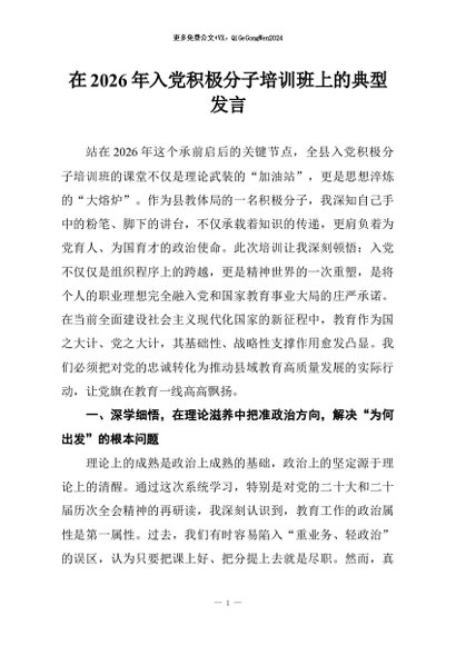 / 【七哥公文】2026年:在2026年入党积极分子培训班上的典型发言+更多免费公文+VX:QiGeGongWen2024