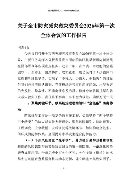 【七哥公文】2026年:全市防灾减灾救灾委员会2026年第一次全体会议的工作报告+更多免费公文+VX:QiGeGongWen2024