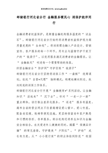【七哥公文】2026年:邮储银行河北省分行 金融服务暖民心 消保护航伴同行_副本+更多免费公文+VX:QiGeGongWen2024