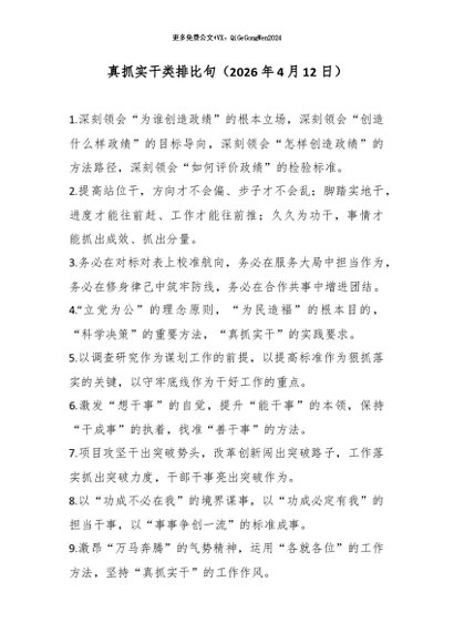 【七哥公文】2026年:真抓实干类排比句(2026年4月12日)_副本+更多免费公文+VX:QiGeGongWen2024