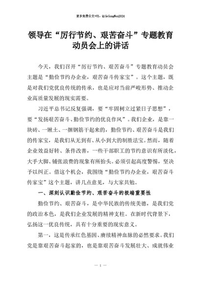 / 【七哥公文】2026年:领导在“厉行节约、艰苦奋斗”专题教育动员会上的讲话+更多免费公文+VX:QiGeGongWen2024