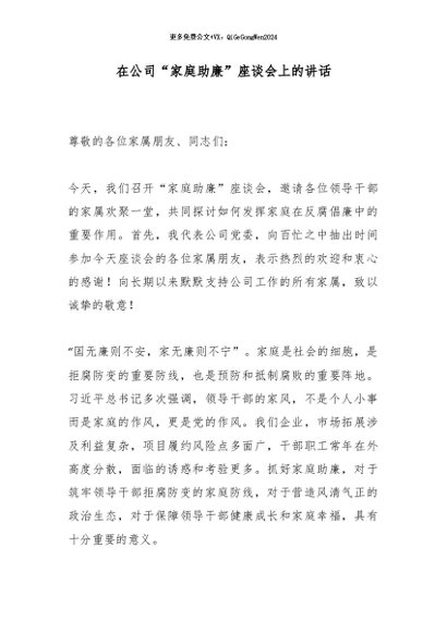 / 【七哥公文】2026年:在公司“家庭助廉”座谈会上的讲话_副本+更多免费公文+VX:QiGeGongWen2024
