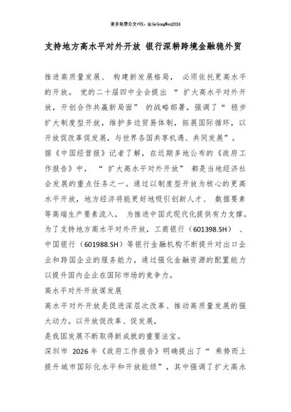 【七哥公文】2026年:支持地方高水平对外开放 银行深耕跨境金融稳外贸_副本+更多免费公文+VX:QiGeGongWen2024