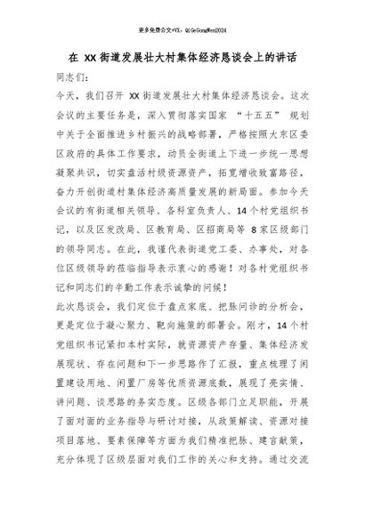 【七哥公文】2026年:在 XX 街道发展壮大村集体经济恳谈会上的讲话_副本+更多免费公文+VX:QiGeGongWen2024