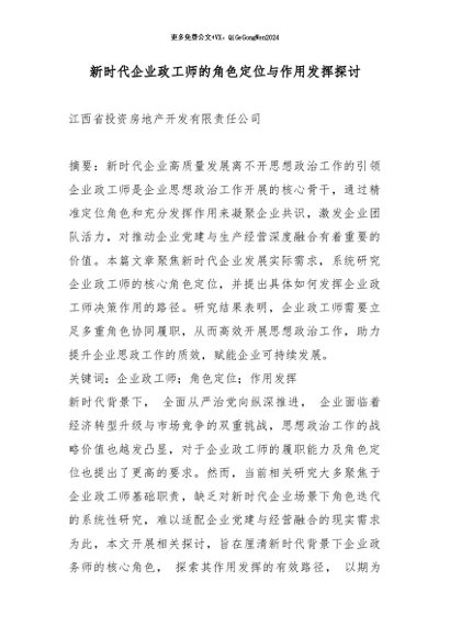 / 【七哥公文】2026年:新时代企业政工师的角色定位与作用发挥探讨_副本+更多免费公文+VX:QiGeGongWen2024