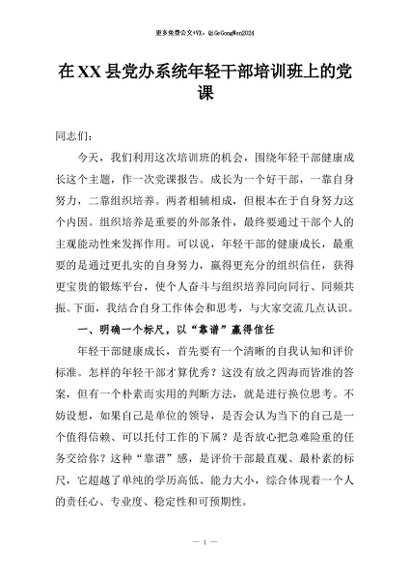 / 【七哥公文】2026年:在XX县党办系统年轻干部培训班上的党课+更多免费公文+VX:QiGeGongWen2024