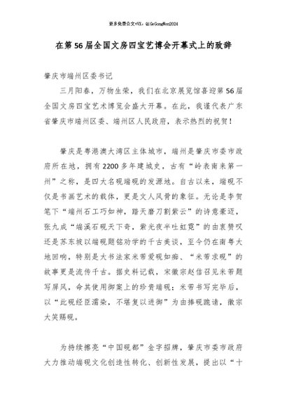 【七哥公文】2026年:在第56届全国文房四宝艺博会开幕式上的致辞_副本+更多免费公文+VX:QiGeGongWen2024