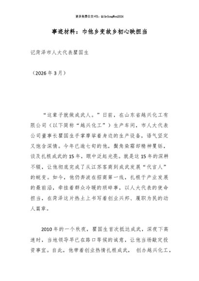 / 【七哥公文】2026年:事迹材料:巾他乡变故乡初心映担当_副本+更多免费公文+VX:QiGeGongWen2024