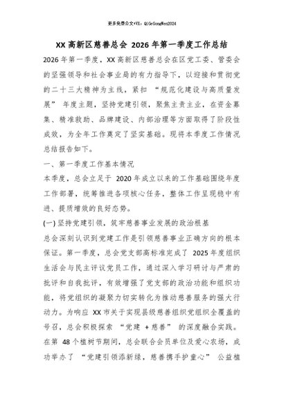 【七哥公文】2026年:XX 高新区慈善总会 2026 年第一季度工作总结_副本+更多免费公文+VX:QiGeGongWen2024