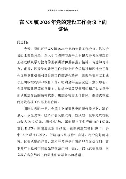 / 【七哥公文】2026年:在镇2026年党的建设工作会议上的讲话+更多免费公文+VX:QiGeGongWen2024