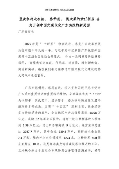 【七哥公文】2026年:坚决扛起走在前、 作示范、 挑大梁的责任担当 奋力开创中国式现代化广东实践的新局面_副本+更多免费公文+VX:QiGeGongWen2024