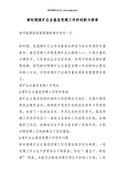 / 【七哥公文】2026年:新时期煤矿企业基层党建工作的创新与探索_副本+更多免费公文+VX:QiGeGongWen2024