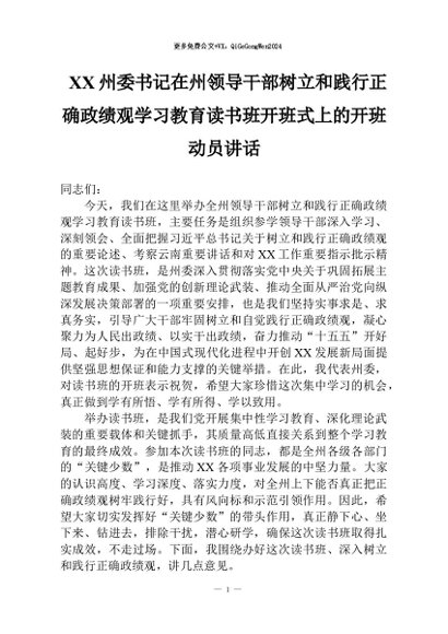 【七哥公文】2026年:州委书记在州领导干部树立和践行正确学习教育读书班开班式上的开班动员讲话+更多免费公文+VX:QiGeGongWen2024