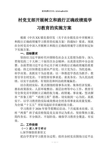 / 【七哥公文】2026年:村党支部开展树立和践行正确学习教育的实施方案+更多免费公文+VX:QiGeGongWen2024