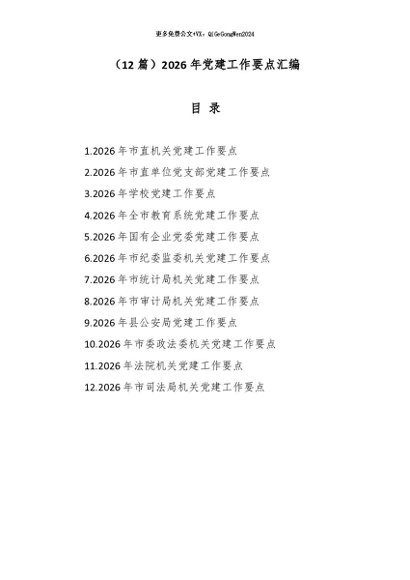 【七哥公文】2026年:(12篇)2026年党建工作要点汇编+更多免费公文+VX:QiGeGongWen2024