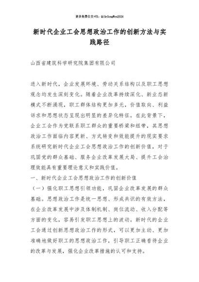 【七哥公文】2026年:新时代企业工会思想政治工作的创新方法与实践路径_副本+更多免费公文+VX:QiGeGongWen2024