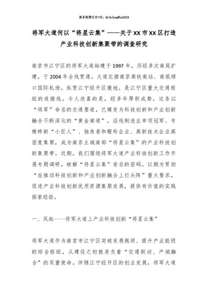 【七哥公文】2026年:将军大道何以“将星云集”——关于XX市XX区打造产业科技创新集聚带的调查研究_副本+更多免费公文+VX:QiGeGongWen2024