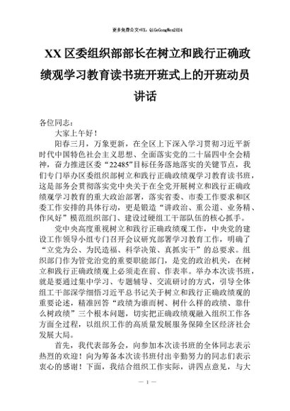 【七哥公文】2026年:区委组织部部长在树立和践行正确学习教育读书班开班式上的开班动员讲话+更多免费公文+VX:QiGeGongWen2024